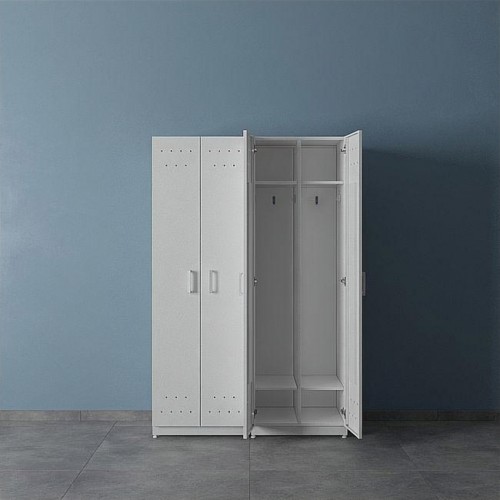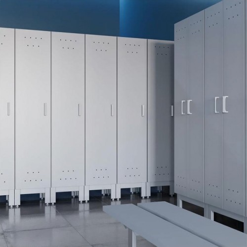 Шкаф шириной 800 мм имеет две дверки, полку и штангу для вешалок. Шкаф шириной 400 мм (только из ЛДСП) имеет одну дверку, полку и штангу для вешалок. Устанавливается на металлический сборно-разборный каркас с полимерным покрытием серого цвета. В каркасе предусмотрены регулируемые опоры в диапазоне 0-30 мм для компенсации неровностей пола. Шкаф из ЛДСП имеет одно общее отделение, шкаф из стали - два.