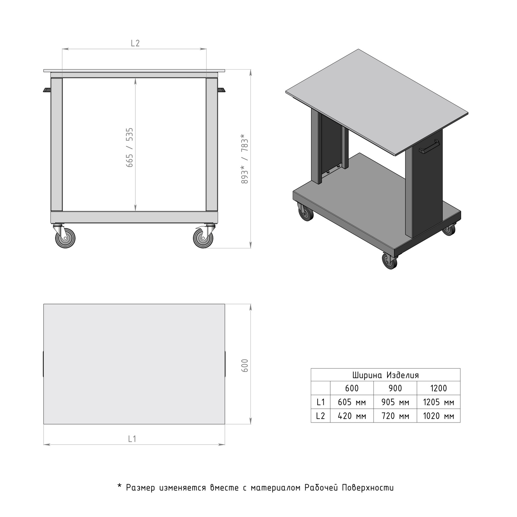 Стол передвижной ЛК-1200 СЛП может дополнительно комплектоваться нижней полкой из того же материала, что и рабочая поверхность.