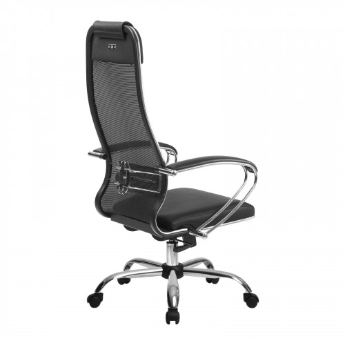 Спинка: высокая с мягким подголовником, черное полимерное покрытие каркаса;