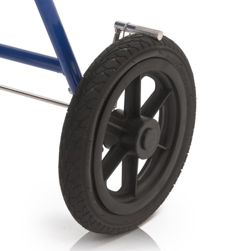 Кресло-коляска оснащена колесами, имеющими задние пневматические и передние цельнолитые шины.