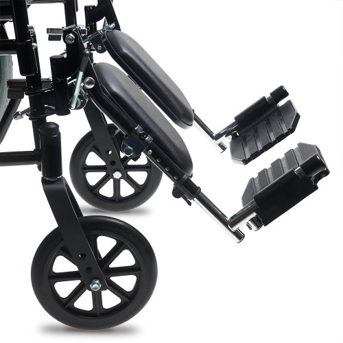 Кресло-коляска оснащена съемными, откидными, регулируемыми по высоте и углу наклона подножками с мягкими упорами для ног.