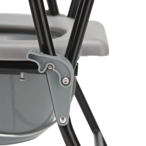 Рама кресла-туалета изготовлена из металла и имеет эмалевое лакокрасочное покрытие.